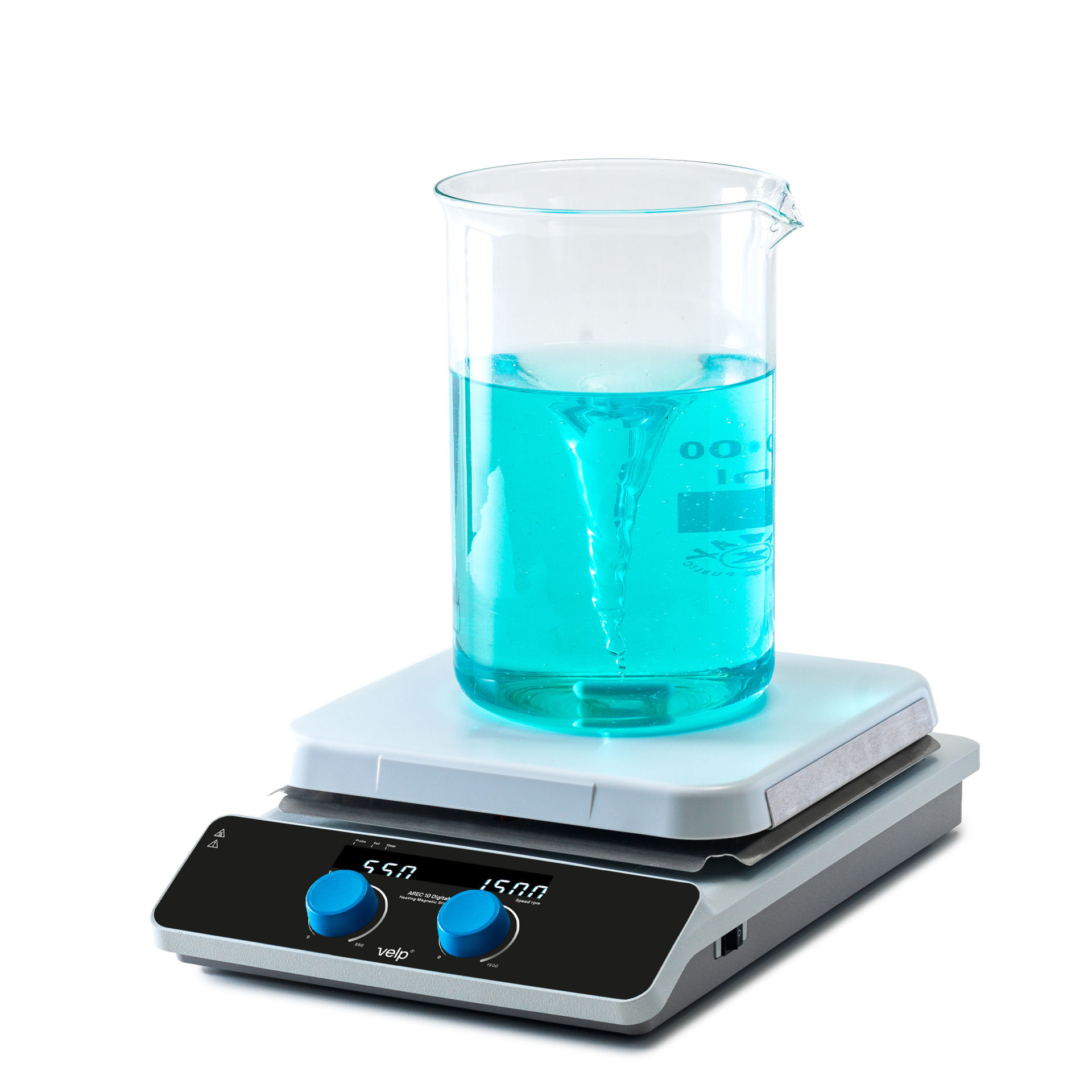 Potente agitador con calefacción digital con placa cerámica cuadrada de 10 pulgadas, que ofrece control preciso de temperatura, alta seguridad y una amplia superficie de trabajo.