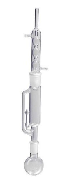 Este aparato consta de un extractor Soxhlet, un condensador Allihn y un matraz, todos ellos equipados con juntas. El diámetro exterior del condensador es de 10mm.
