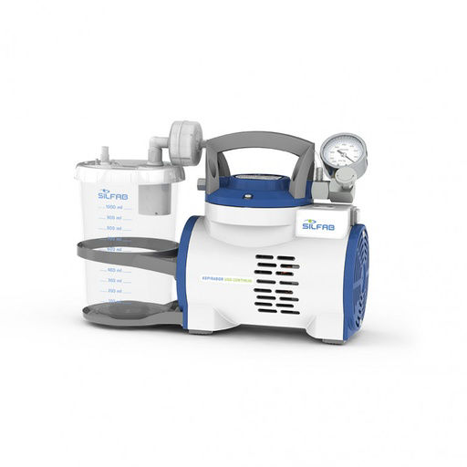 Aspirador de secreciones de uso continuo, con recipiente de 1L y vacuómetro.