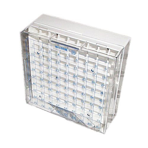 Almacene las muestras de forma segura con las cajas de almacenamiento de tubos de microcentrífuga. El inserto de espuma de poliuretano de alta temperatura sostiene de forma segura 64 u 81 tubos de microcentrífuga de 0.2, 0.5 o 1.5 ml. Características Principales:• Fondo construido de policarbonato blanco.• La tapa de policarbonato transparente tiene una cuadrícula impresa para fines de inventario• Almacenar de -135° hasta +121°C.• La tapa acepta marcadores para la identificación de cajas y tubos y está codificada para orientar el frente y la parte posterior de la caja.