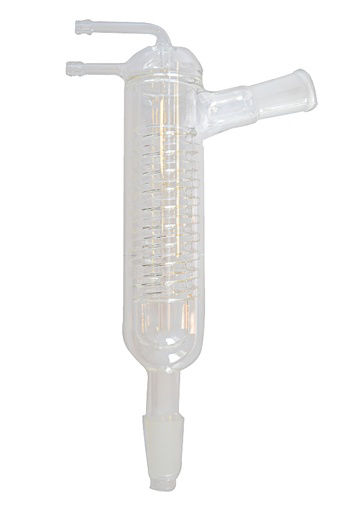 El condensador tipo Friedrichs permite un funcionamiento muy eficiente. El tubo interior helicoidal se ajusta estrechamente a la camisa. El tubo de vapor está sellado a la camisa en un ángulo de 75° y tiene una junta exterior de 24/40.