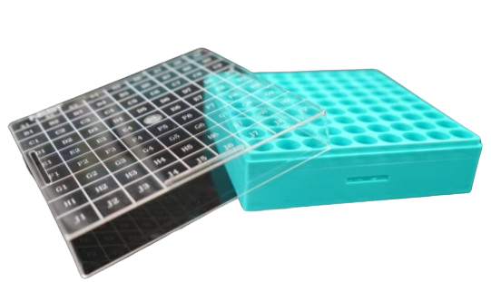 Tapa de PC y fondo de ABS. Rango de temperatura soportada: -196℃ a +70℃. Envase individual. Cubierta de policarbonato transparente para una fácil identificación. Rejilla alfanumérica para facilitar la identificación de la muestra. Cada caja incluye orificios de drenaje y rejillas de ventilación para minimizar la condensación.