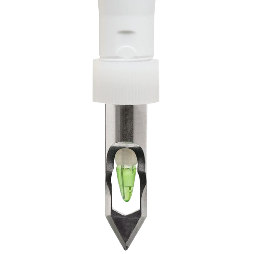 Esta cuchilla permite cortar fácilmente la carne para que el electrodo de pH entre en contacto con el producto cárnico interno mientras lo protege de fracturas o quiebres.