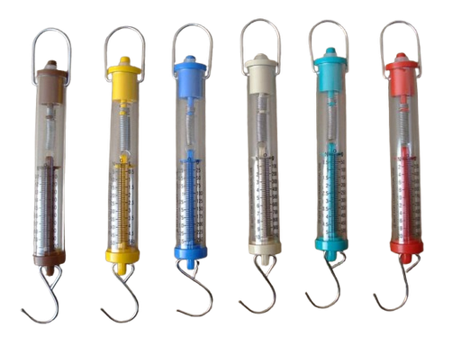 Dinamómetros de plástico, tubulares, con resorte.