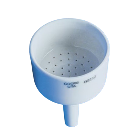 Buchner, con placa perforada fija, esmaltada por dentro y por fuera excepto el borde.