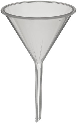 Utilice papeles de filtro estándar con los embudos analíticos de polipropileno con vástagos largos y nervaduras externas que eliminan el bloqueo de aire, estos embudos son una alternativa inastillable al vidrio y resistentes químicamente a una amplia variedad de reactivos y químicos de laboratorio.