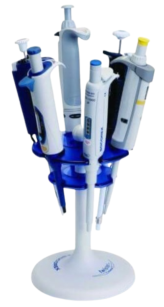 Soporte para micropipetas con capacidad para sostener hasta 6 pipetas monocanales de la mayoría de las marcas. Su diseño único y su rotación suave permiten una rápida selección de los instrumentos. Desmontaje fácil para un mantenimiento simple. Discos intercambiables disponibles en 7 colores translúcidos.