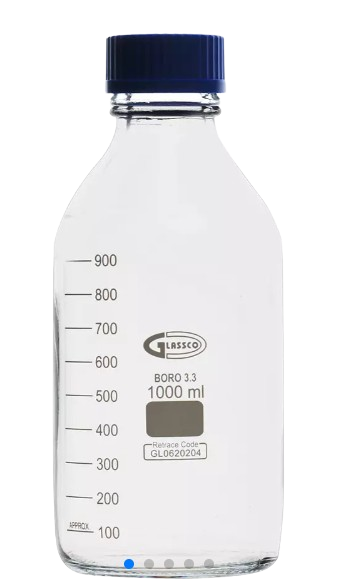Características principales:• Cumple con la norma DIN/ISO 4796.• Tapón de rosca de PE autoclavable y anillo de vertido.• Impreso con código de rastreo.• Anillos de vertido de PE especialmente diseñados para operaciones sin goteo.• Escala de graduación clara y gran área de marcado.• Estas botellas completas son autoclavables y pueden ser esterilizadas.• Estas botellas son muy duraderas mecánicamente y resistentes a los productos químicos.