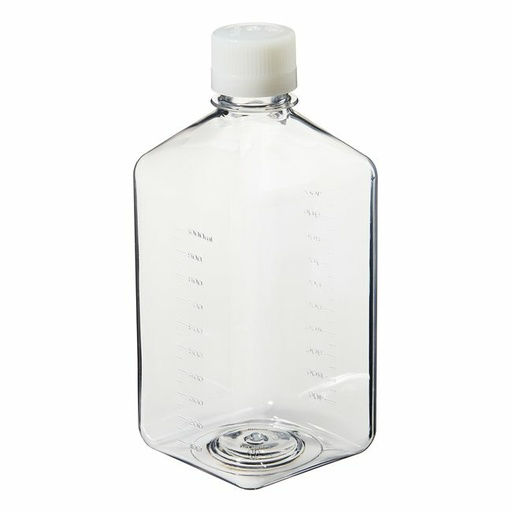 Proporcione excelentes propiedades de barrera a los gases para el almacenamiento y envío de medios líquidos, tampones y sueros con los frascos de medios PET cuadrados con cierre. Estas botellas livianas son resistentes a roturas, estériles y vienen en un diseño cuadrado que ahorra espacio. Características Principales:• Tereftalato de polietileno con cierre de polietileno natural de alta densidad.• Moldeado en graduaciones y anillo de cuello para usar con mangas retráctiles a prueba de manipulaciones.• Gamma irradiado a 10 -6 Estéril nivel de garantía (SAL)• No pirogénico y no citotóxico.• Transparencia y permeabilidad reducida a CO 2 y O 2• El material de la botella y el cierre no contiene componentes derivados de animales (ADCF).• Prueba de fugas†.• Certificaciones: Las botellas de PET y los materiales de cierre de HDPE cumplen con los estándares de pruebas biológicas actuales, incluida la USP Clase VI, USP <661>, Farmacopea europea para toxicidad anormal