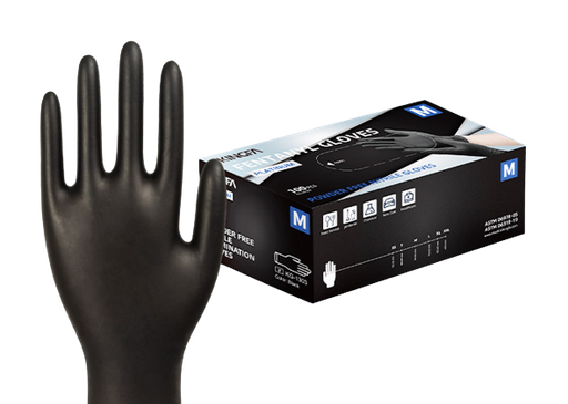 Para uso en examinación, laboratorios, industria y más. Calidad de Grado Médico. Fabricados en 100% nitrilo, no contienen latex. Color: Azul o Negro.