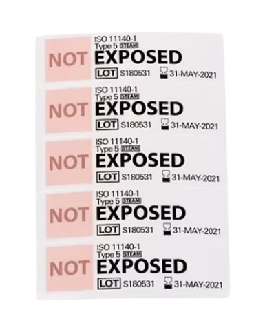 ISO 11140-1 Indicador Integrador Tipo 5 Transición de color: rosa claro → color oscuro La palabra «NO» queda completamente oculta cuando se cumplen las condiciones de validación Puede utilizarse como tira o como etiqueta aplicada para el registro posterior al proceso Libre de plomo, sin metales pesados ni látex