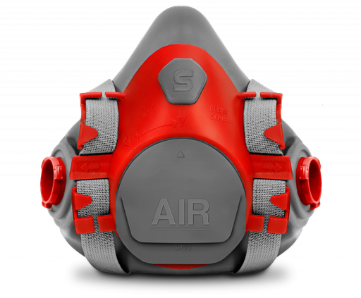 Respirador de medio rostro AIR Serie S950, con sello facial de silicona, arnés ajustable, válvula MAX FLOW y de fácil mantenimiento.
