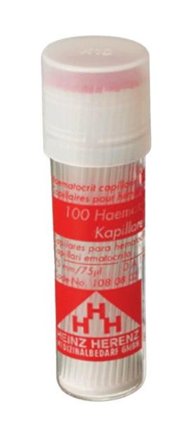 Capilares desechables de vidrio Longitud 75 mmDiámetro exterior 1.5 – 1.6 mm75 µl