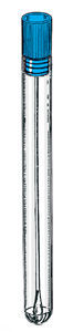 Hisopo estéril en tubo de ensayo de polipropileno. El tubo cuenta con etiqueta y asta de plástico.