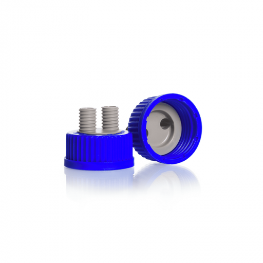 Características principales: • Se pueden aceptar tubos rígidos o semirrígidos de diferentes diámetros utilizando un tapón azul GL 14 de tapa abierta con uno de los insertos. • Se pueden utilizar cuatro diámetros diferentes de tubo (1.6mm, 3.0mm, 3.2mm o 6.0mm de diámetro exterior) cambiando los insertos GL 14. • Aplicando una presión positiva o negativa se puede bombear el líquido fuera o dentro de la botella a través del tapón de rosca. • Totalmente compatible con todas las roscas GL 45 y, por tanto, muy versátil.