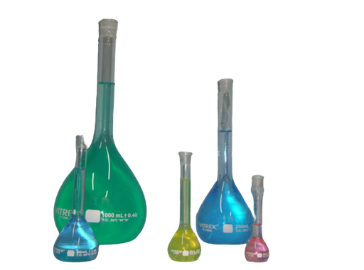 Matraces aforados con tapa de 20 mL. Tolerancia 0,04. Material CLASE "A" de fabricación nacional.
