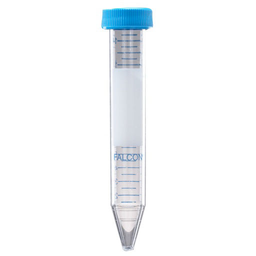 Los tubos de centrífuga cónicos de poliestireno Falcon de 15ml tienen una capacidad de 1.800 RCF. Los tubos vienen con Tapones de rosca con sello de cúpula de polietileno. No contienen RNasa/DNasa.