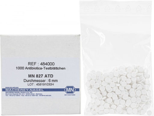 Los productos MN 827 ATD se utilizan para probar la resistencia de los patógenos a los antibióticos. Para esta prueba, el papel de filtro puede impregnarse con el antibiótico a probar y colocarse sobre el medio nutritivo inoculado. Dependiendo de la eficacia, se forma una zona de inhibición más o menos grande.