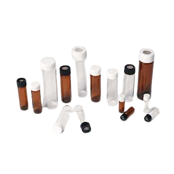 Kit de 200 viales transparentes de 12ml con tapa rosca y septa.