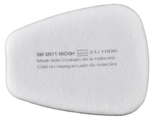 El prefiltro 3M 5N11 brinda una efectiva e higiénica protección respiratoria contra aerosoles sólidos y líquidos sin aceite.