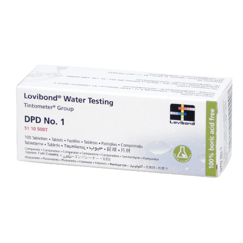 El método DPD es elemental para la determinación de cloro y para la correcta dosificación del producto para el cuidado del agua. La tableta DPD No.1 se utiliza para determinar el cloro libre. La tableta se coloca en una cubeta con unas pocas gotas de la muestra de agua y se tritura, se agrega la muestra de agua y se mezcla agitando. El valor se puede medir inmediatamente. El DPD No.1 también se utiliza para la determinación de bromo, ozono y monocloramina-dicloramina.100 tabletas por paquete.