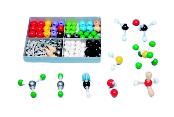Presentado en caja de 4 compartimentos. Incluye 18 átomos de Hidrógeno (I), 8 átomos de Carbono (IV), 7 átomos de Oxígeno (II, IV), 6 átomos de Cloro (I), 6 átomos de Flúor (I), 4 átomos de Nitrógeno (III, IV), 3 átomos de Azufre (II, IV, VI), 2 átomos de Boro (III, IV), 3 orbitales, 26 enlaces medios (color gris), 5 enlaces medios (violeta) y 12 enlaces largos flexibles.
