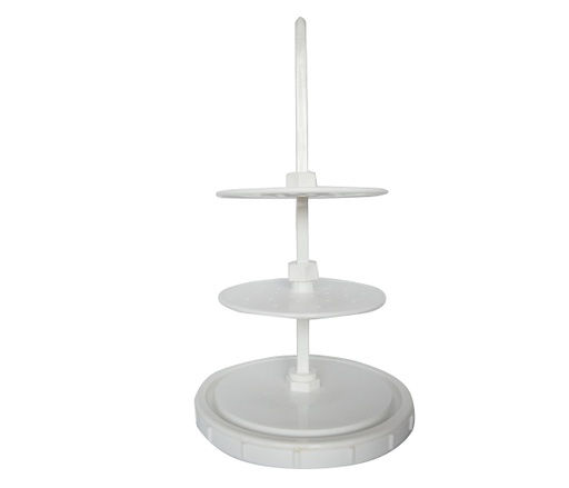 Características principales: • Se trata de un soporte estable, no corrosivo y desmontable que puede albergar 28 pipetas con un diámetro máximo de 14mm. • La pesada base mide 225mm de diámetro y en ella se atornilla una varilla cuadrada recubierta de polipropileno que mide 375mm de longitud. • El disco superior que puede fijarse en la varilla tiene orificios para sujetar las pipetas, mientras que el inferior tiene orificios piloto en los que se apoyan las puntas de las pipetas y los líquidos escurren hacia la base. • Estos discos se pueden ajustar en la varilla según la longitud de la pipeta. • Las flechas de los discos deben mantenerse paralelas para asegurar que los agujeros correspondientes estén centrados.