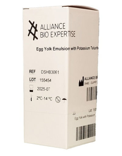 El Suplemento Yema de Huevo para Baird Parker Agar de Bio Alliance Expertise es un aditivo especializado diseñado para mejorar la eficacia del Baird Parker Agar en la detección y enumeración de Staphylococcus aureus. Este suplemento enriquece el medio de cultivo con nutrientes esenciales que optimizan el crecimiento y la diferenciación de este patógeno crítico en muestras alimentarias y ambientales.