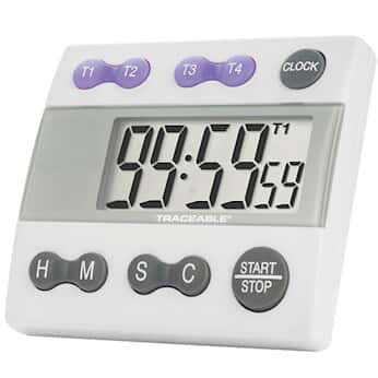 Cada canal tiene una alarma distintiva que suena durante 1 minuto, pulsando cualquier botón se apagará la alarma. La memoria del temporizador recuerda la hora anterior ajustada. Presenta la hora del día en formatos de 12 o 24 horas. Los productos Traceable® cuentan con un certificado Traceable® numerado individualmente que se suministra con cada unidad y que garantiza la precisión de nuestro laboratorio de calibración ISO/IEC 17025:2017(1750.01) acreditado por A2LA. Indica la trazabilidad de las mediciones a las unidades del SI a través del NIST u otros institutos nacionales de medición reconocidos (NMI) que son signatarios del Acuerdo de Reconocimiento Mutuo del CIPM. Cada producto pasa por un intenso proceso de verificación antes de poder llevar el nombre de Trazable, lo que le permite ahorrar tiempo y dinero al no tener que calibrarlo por separado.