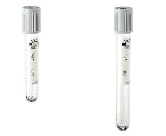 Tubos Vacutest 13x75 2ml KF + Na2 EDTA. Cada paquete contiene 100 unidades.