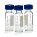 Envase de viales, con tapón de rosca, premontados, viales transparentes con punto de escritura, tapones azules, certificados, septos de PTFE/silicona.